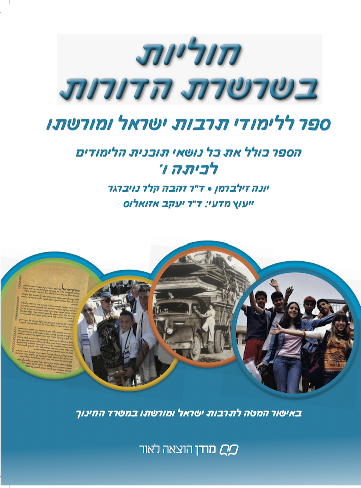הספר "חוליות בשרשרת הדורות" מיועד לתלמידי כיתה ו', ומהווה חוברת מקיפה ללימודי תרבות ישראל ומורשתו בהתאם לתוכנית הלימודים המאושרת על ידי משרד החינוך. דרך מבט אינטגרטיבי, הספר בוחן את התרבות היהודית־ישראלית על ציר הזמן, תוך שימת דגש על זהות אישית וקולקטיבית, ערכים הומניסטיים ושותפות בין מגזרים שונים בחברה הישראלית.