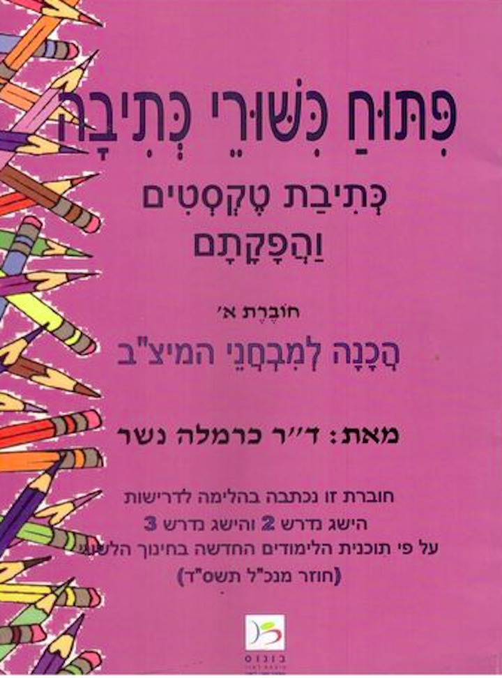 חוברת זו היא הראשונה בסדרה "פיתוח כישורי כתיבה", ומיועדת להכנה למבחני המיצ"ב בכתיבה. החוברת מתמקדת בהוראת כתיבת טקסטים מגוונים ובהפקתם, בהתאם לדרישות משרד החינוך במדרש 2 ו־3. היא כוללת משימות תרגול בשלל סגנונות כתיבה, הנחיות ברורות, ודגמים המכוונים את התלמיד להתנסויות כתיבה איכותיות.